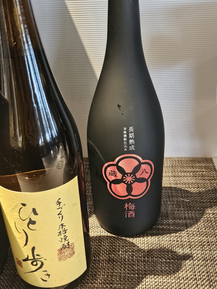 음식 주문을 어떻게 하는지 살펴보며 마시기 위해 매실주를 먼저 조금 가져왔는데 적당히 은은하게만 달아서 꽤나 맛있었다 (아시안식 칭찬 ㅋㅋ). 비싼 술 중 향은 단데 맛은 달지 않은 경우가 있어서 첨언하자면 얘는 맛이 은은하게 달았다. 사진에서 붉은 매화 문양 있는 검은색 보틀이 그 우메슈였는데, 찾아보니 Kurahachi Umeshu (蔵八梅酒) 인 것 같고 별로 비싼 술은 아닌듯 하다.