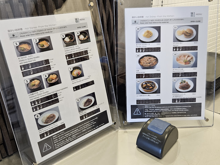 식사는 자리마다 QR 코드가 있고 그걸로 주문할 수도 있어보였는데, 나는 요즘 나이를 먹어서 그런가 대면으로 하는게 편해서 Noodle Bar 라고 되어 있는 곳을 가서 메뉴판 보고 직접 주문했다. 참고로 가져오는것과 식기반납 모두 셀프였다.