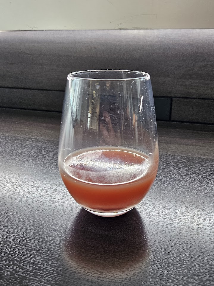 이 날 아침은 안먹고 긴자에서 파르페 하나만 먹고 간 상태라 그런지 스시랑 홍합을 다 먹고도 뭔가를 더 먹을 수 있을 것 같아서 ㅋㅋㅋ 누들바로 다시 갔다. 멋쩍게 인사하니까 아까 그 분께서 엄청 반겨주셨다. 이번에는 카레랑 규동 중에 뭘 먹을지 고민하고 있었는데, 조리사분께서 원하면 절반 사이즈로 둘 다 줄 수도 있다고 하셔서 그렇게 부탁드렸다. 카시스 리큐르랑 오렌지 주스도 있길래 같이 마시려고 카시스 오렌지를 만들었는데, 첨해봐서 그런지 색이 영 별로였다.