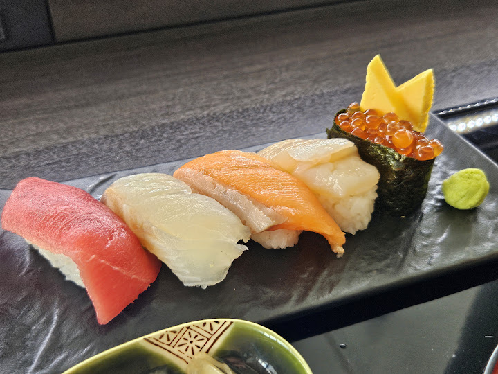 놀랍게도 4박 5일동안 스시, 카이센동, 규동, 라멘 이 모든걸 한번도 먹은 적이 없는데 여기서 채우고 가게 되어 재밌었다. 스시는 참치나 연어는 그냥 그랬고, 가리비는 괜찮은 정도였는데 의외로 연어알이 꽤 맛있었다. 연어알 군함을 맛있다고 느낀 건 처음인 것 같은데? 그리고 홍합도 식감이 약간 냉동했다가 해동된 것 같이 좀 푸석하긴 했는데, 그걸 감안해도 맛이 괜찮았다. 다만 국물은 시원한 조갯국물일줄 알았는데 엄청 짜서 마실 수 없었다 ㅜㅜ.